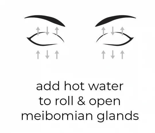- Hot Compress & Massage: Run the Focused Eye Roll under hot water to create a warm compress. Roll up and down (perpendicular to the eyelid margins) for optimal results. Always test the temperature with your wrist before applying to the eye area.